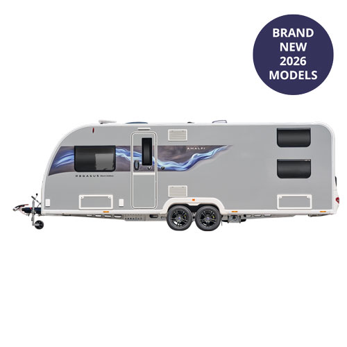 The extra-wide 8ft wide Pegasus Grande GT75 caravan has been designed to offer a unique range of 6 grande layouts, plenty space for relaxing or entertaining guests in style.