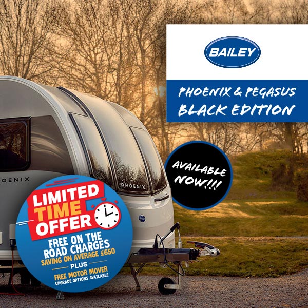 The Bailey Pegasus Grande Black Edition offers bold design, 8ft-wide space, 5 layouts, and year-round comfort – perfect for family adventures or relaxing getaways.