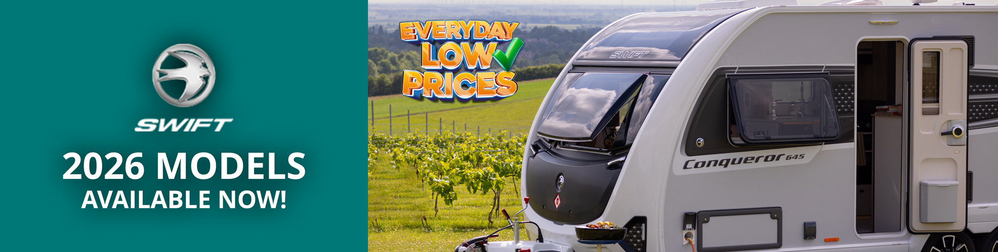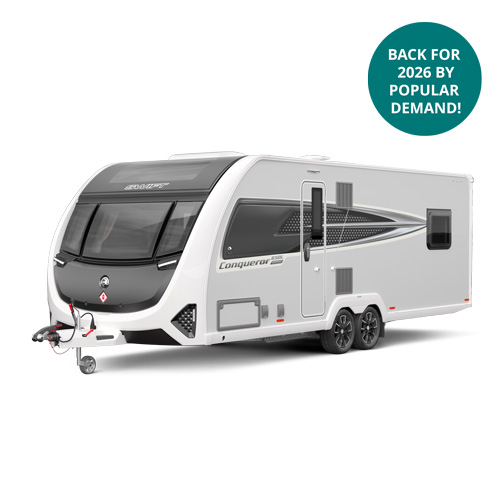 The iconic 2026 Swift Conqueror returns! Packed with luxury features, SMART construction and Alde heating, it’s the ultimate premium touring caravan for style, comfort and effortless performance.